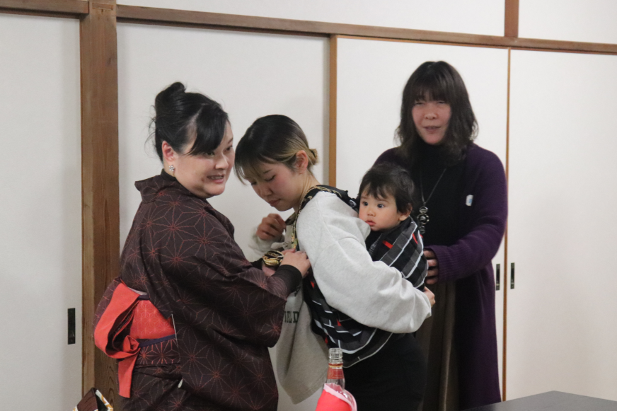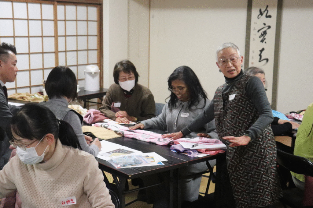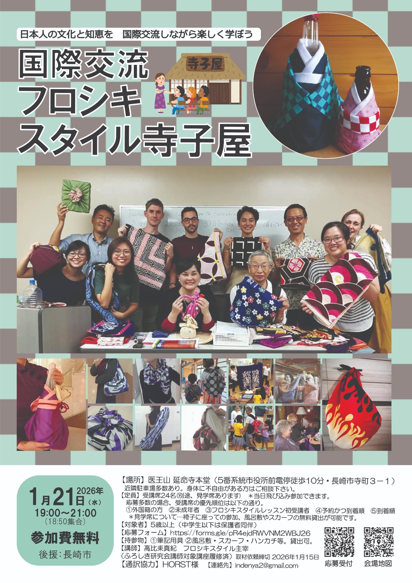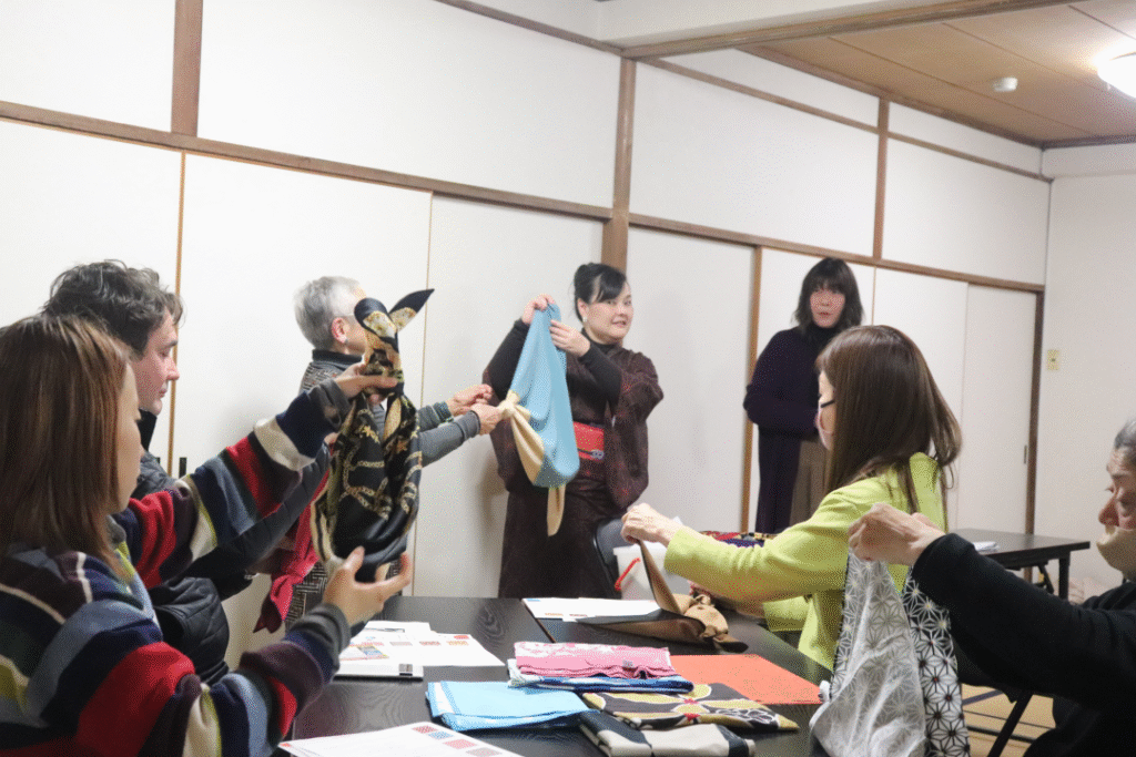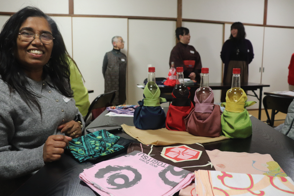 長崎市内にあるお寺さん。延命寺さんで国際交流「フロシキ講座」。