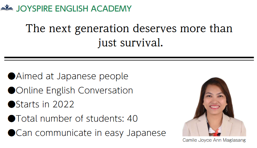 キャミルが代表を務める「JOYSPIRE ENGLISH ACADEMY」に改めました。